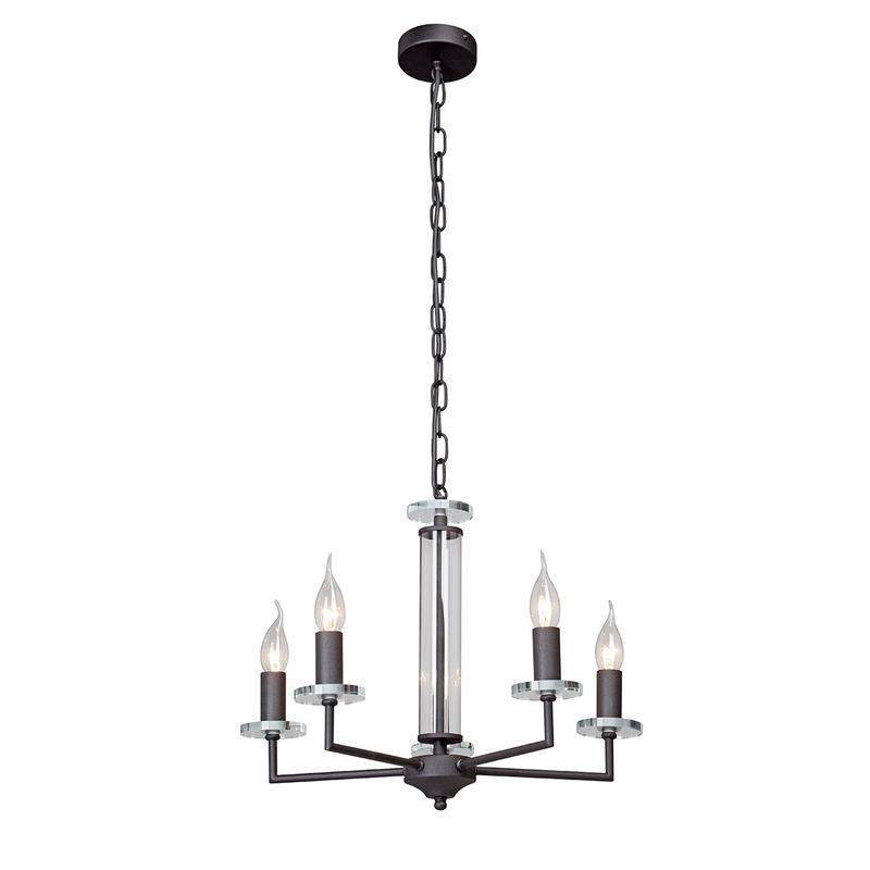 Люстра Vitaluce V4767-1/5, на пять ламп, под цоколь Е14 в стиле ар-деко. Может украсить ваш коридор, спальню или гостиную. Цвет арматуры – чёрный матовый . Возможна установка энергосберегающих, светодиодных, филаментных или ламп накаливания. При использовании светодиодной лампы мощностью 8 Вт площадь освещения составит 20 кв.м. Лампы в комплект не входят. Параметры изделия: высота изделия - 96 см, диаметр - 47 см. Размеры потолочной чаши: диаметр - 9,8 см, высота - 2,5 см. Длина регулируется. Тип крепления - планка. Прилагается инструкция по сборке и установке.