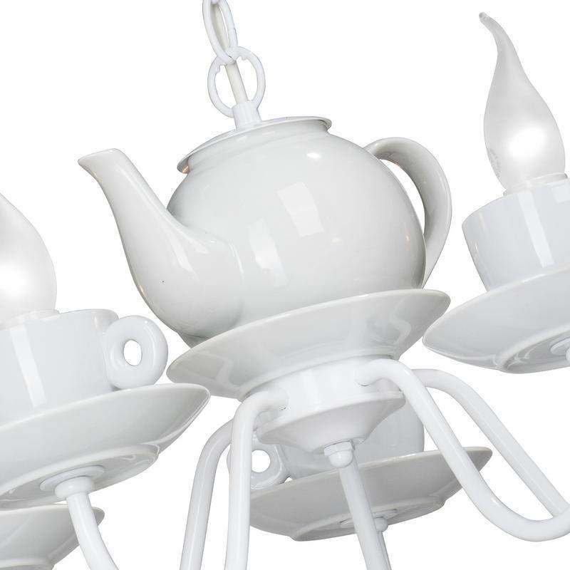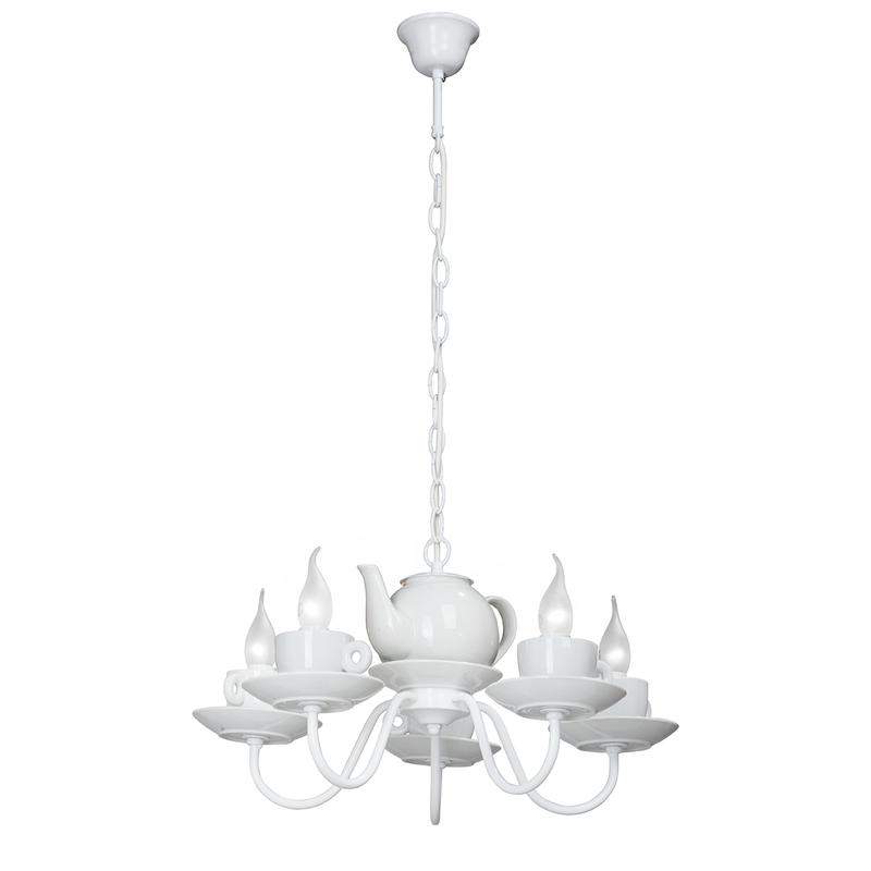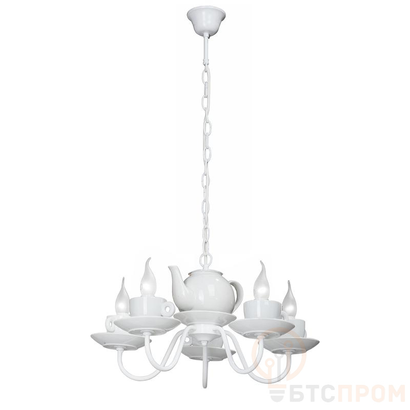 Люстра Vitaluce V4130/5 на пять ламп под цоколь Е14 в нежном и необычном стиле рустика. Может осветить вашу столовую, кухню, гостиную. Цвет арматуры - белый глянец. Возможна установка ламп накаливания, светодиодных и филаментных. При использовании ламп накаливания площадь освещения составит 15 кв.м. При использовании светодиодных ламп мощностью 8 Вт площадь освещения составит 25 кв.м. Параметры изделия: высота - 78 см, диаметр - 54 см. Высота изделия регулируется. Тип крепления - крюк. Прилагается инструкция по сборке и установке.