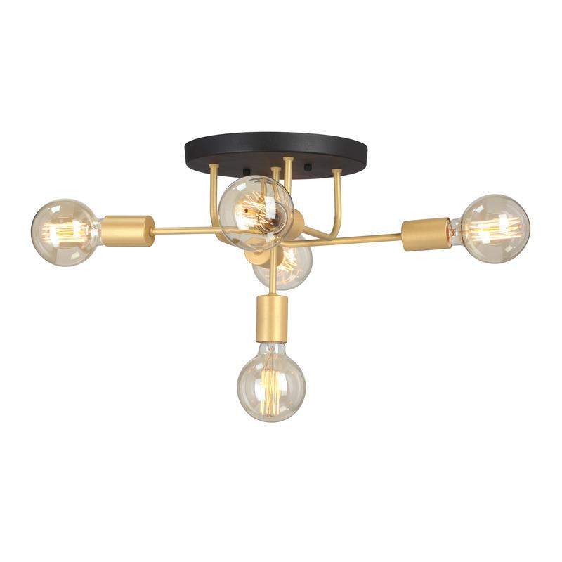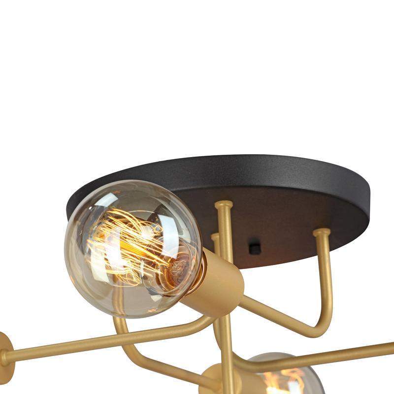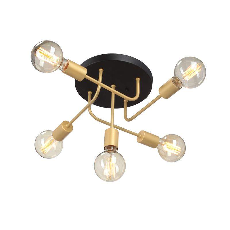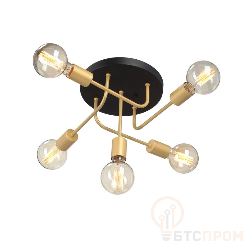 Люстра Vitaluce V3998-8/5PL на пять ламп под цоколь Е27 в стиле лофт. Цвет арматуры - золотистый. Возможна установка энергосберегающих, филаментных, накаливания и светодиодных ламп. Площадь освещения с лампой накаливания составляет 15 кв.м. При светодиодной лампе мощностью 8Вт площадь освещения составит 20 кв.м. Размеры изделия: высота - 26,5 см, диаметр - 41 см. Размеры потолочной чаши: высота - 2,5 см, диаметр - 25 см. Тип крепления - планка. Прилагается инструкция по сборке и установке.
