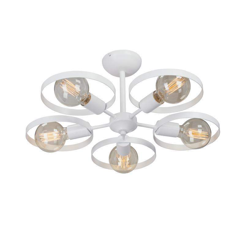 Люстра Vitaluce V4379-0/5PL на пять ламп под цоколь Е27 в светлом и воздушном стиле лофт. Может осветить вашу гостиную, спальню или кухню. Цвет арматуры - белый матовый. Возможна установка светодиодных, энергосберегающих, филаментных или ламп накаливания. Площадь освещения при использовании ламп накаливания составляет 15 м2. При использовании светодиодной лампы мощностью до 8 Вт площадь освещения может быть увеличена до 25 м2. Лампы в комплект не входят. Параметры изделий: высота - 26 см, диаметр - 56 см. Размеры потолочной чаши: высота - 2,5 см, диаметр - 7 см. Тип крепления - планка. Не рекомендовано для ванных комнат, подходит для установки на натяжной потолок. Прилагается инструкция по сборке и установке.