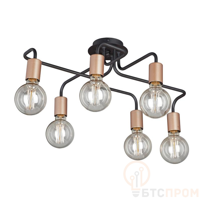 Люстра V4560-1/6PL на шесть ламп под цоколь Е27 привлекательного и вместе с тем грубоватого стиля лофт прекрасно впишется в помещение с любым другим стилевым наполнением. Цвет арматуры - черный. Возможна установка светодиодных, энергосберегающих, филаментных или ламп накаливания. Площадь освещения при использовании ламп накаливания составляет 18 м2. При использовании светодиодной лампы мощностью до 8 Вт площадь освещения может быть увеличена до 24 м2. Лампы в комплект не входят. Параметры изделий: высота - 24 см, длина - 64 см, ширина - 52 см. Размеры потолочной чаши: высота - 2,5 см, диаметр - 9,8 см. Тип крепления - планка. Не рекомендовано для ванных комнат, подходит для установки на натяжной потолок. Прилагается инструкция по сборке и установке.