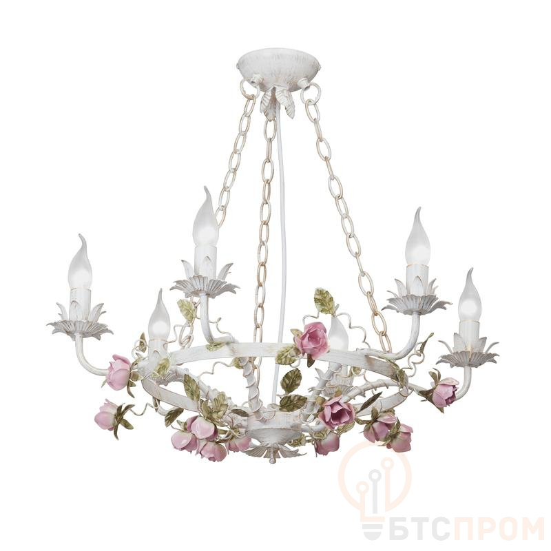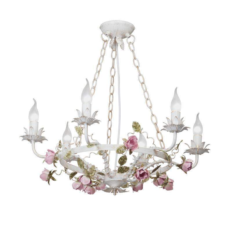 Люстра подвесная Vitaluce V1137/6 на шесть ламп под цоколь Е14 в стиле флористика станет отличным выбором для освещения вашей комнаты. Может украсить ваш коридор, спальню или столовую. Цвет арматуры – белый. Возможна установка энергосберегающих, светодиодных, филаментных или ламп накаливания. При использовании светодиодной лампы мощностью 8 Вт площадь освещения достигает 24 кв.м. Лампы в комплект не входят. Параметры изделия: высота изделия - 57 см, диаметр - 65 см. Размеры потолочной чаши: диаметр - 12 см, высота - 4 см. Прилагается инструкция по сборке и установке.