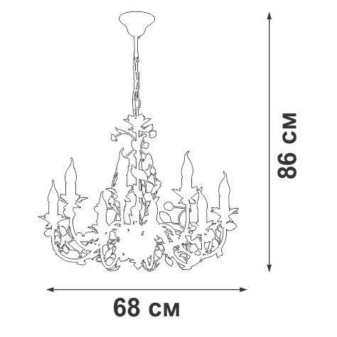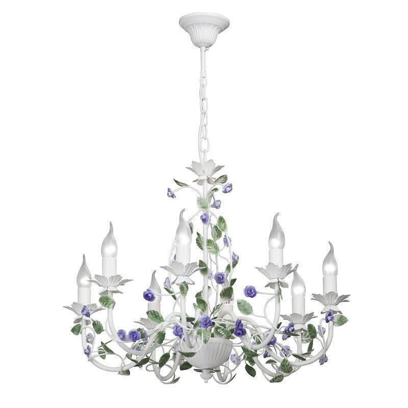 Люстра V1823-0/8 VITALUCE для любителей утонченного интерьера, выполнена в стиле флористика. Рассчитана на 8 ламп по 40 Вт, цвет арматуры - белый, тип крепления - крюк. Лампы в комплект не входят.