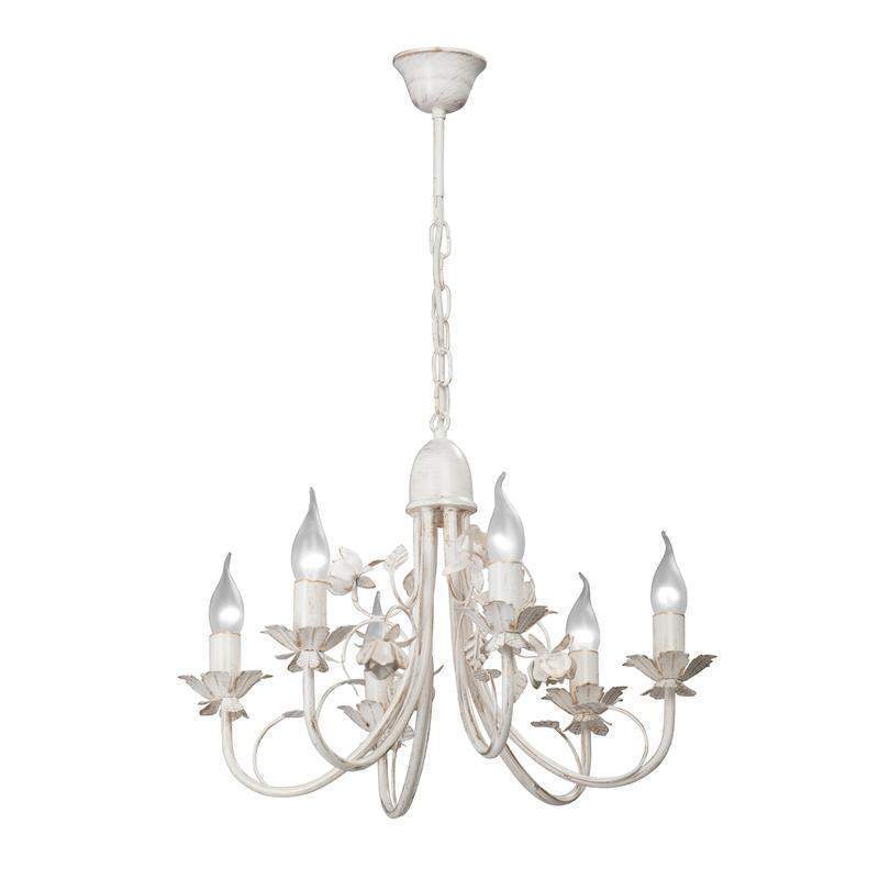 Люстра V1831-0/6 VITALUCE для любителей утонченного интерьера, выполнена в стиле флористика. Рассчитана на 6 ламп по 40 Вт, цвет арматуры - бело-бежевый, тип крепления - крюк. Лампы в комплект не входят. При использовании светодиодной лампы мощностью до 8 Вт площадь освещения до 20 м2