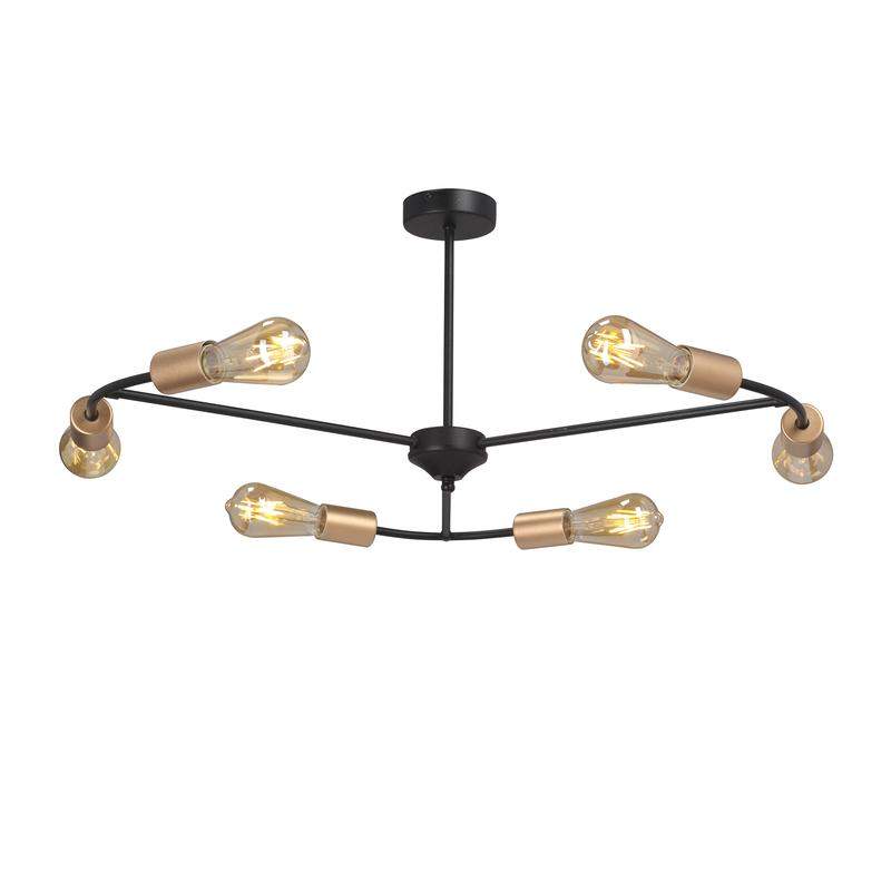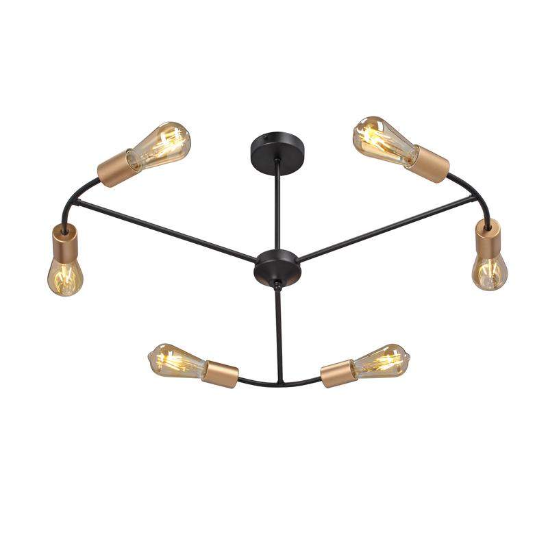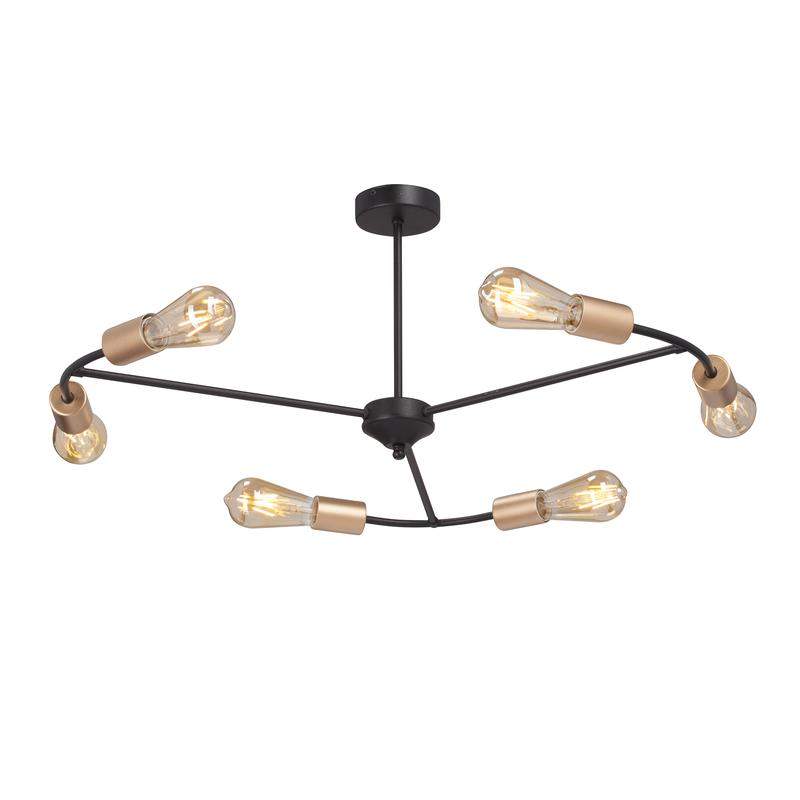 Люстра потолочная Vitaluce V3025-1/6PL на шесть ламп, под цоколь Е27 строгого и изысканного стиля лофт. Может украсить вашу гостиную, столовую или спальню. Цвет арматуры - чёрное с золотом. Возможна установка светодиодных, энергосберегающих, филаментных или ламп накаливания. Площадь освещения при использовании ламп накаливания, максимальной мощностью 60 Вт, составляет 18 м2. При использовании светодиодной лампы мощностью до 8 Вт площадь освещения может быть увеличена до 24 м2. Лампы в комплект не входят. Параметры изделия: высота 32, диаметр - 79 см. Размер потолочной чаши: диаметр - 9,8 см, высота - 2,5 см. Тип крепления - планка. Не рекомендовано для ванных комнат, подходит для установки на натяжной потолок. Прилагается инструкция по сборке и установке.