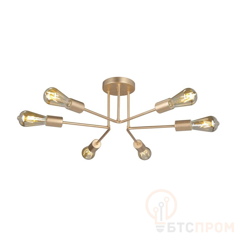 Люстра потолочная Vitaluce V3071-8/6PL на шесть ламп под цоколь Е27 в стиле лофт будет прекрасным дополнением для любого интерьера. Люстра на потолок может украсить не только вашу гостиную, столовую или спальню, он также идеально впишется в лофт пространства, кафе, рестораны и другие общественный места. Потолочная люстра изготовлена из металлического каркаса. Цвет арматуры - золотой. Возможна установка светодиодных, энергосберегающих, филаментных или ламп накаливания. Площадь освещения при использовании ламп накаливания составляет 18 м2. При использовании светодиодной лампы мощностью до 8 Вт площадь освещения может быть увеличена до 20 м2. Люстра имеет возможность крепления на планку, что делает ее универсальной для монтажа к любым видам потолков. Обращаем ваше внимание, лампы в комплект не входят. Параметры изделия: высота - 22 см, диаметр - 54 см. Прилагается инструкция по сборке и установке.