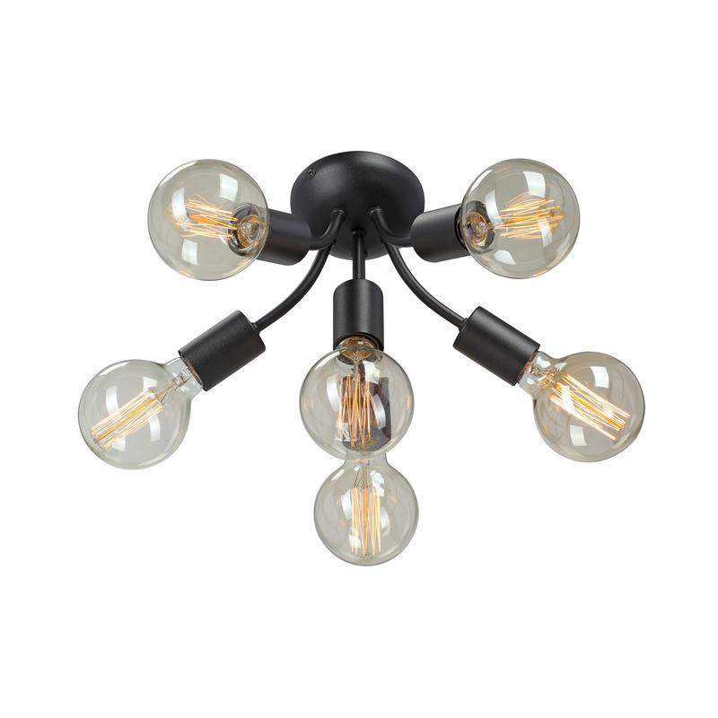 Люстра Vitaluce V3927-1/6PL на шесть ламп под цоколь Е27 в стиле лофт. В зависимости от дизайна, люстра может подойти для разных комнат Вашего дома: для гостиной, зала, столовой, кухни, спальни или кабинета. Цвет арматуры - черный. Возможна установка светодиодных, энергосберегающих, филаментных или ламп накаливания. Площадь освещения при использовании ламп накаливания составляет 18 м2. При использовании светодиодной лампы мощностью до 8 Вт площадь освещения может быть увеличена до 30 м2. Лампы в комплект не входят. Параметры изделий: высота - 18 см, диаметр - 32 см. Размеры потолочной чаши: высота - 4 см, диаметр - 12 см. Тип крепления - планка. Не рекомендовано для ванных комнат, подходит для установки на натяжной потолок. Прилагается инструкция по сборке и установке.