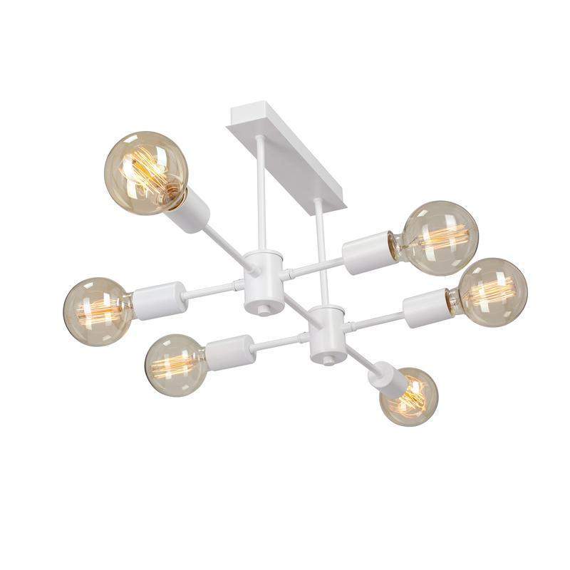 Люстра Vitaluce V3989-0/6PL на шесть ламп под цоколь Е27 в оригинальном и современном стиле лофт, может украсить вашу спальню, кухню или детскую. Цвет арматуры - белый матовый. Возможна установка светодиодных, энергосберегающих, филаментных или ламп накаливания. Площадь освещения при использовании ламп накаливания составляет 18 м2. При использовании светодиодной лампы мощностью до 8 Вт площадь освещения может быть увеличена до 30 м2. Лампы в комплект не входят. Параметры изделий: высота - 29,5 см, длина -76 см, ширина - 36,5 см. Тип крепления - планка. Не рекомендовано для ванных комнат, подходит для установки на натяжной потолок. Прилагается инструкция по сборке и установке.