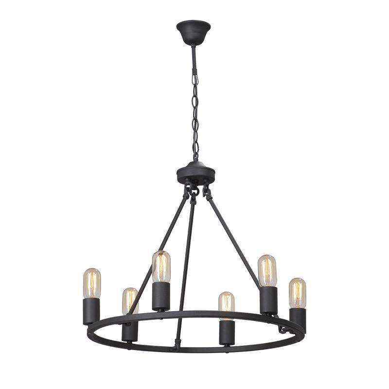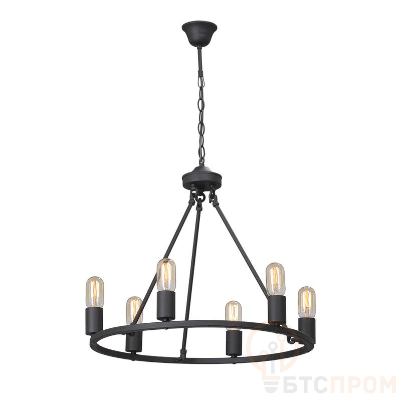 Люстра V4892-1/6 VITALUCE на 6 ламп по 40 Вт привлекательного и вместе с тем грубоватого стиля лофт прекрасно впишется в помещение с любым другим стилевым наполнением. Цвет арматуры - черный, тип крепления - крюк. Лампы в комплект не входят. При использовании светодиодной лампы мощностью до 8 Вт площадь освещения до 20 м2.