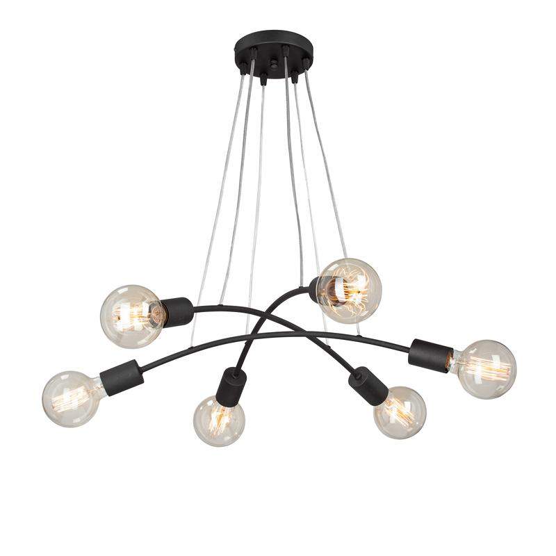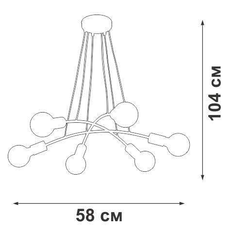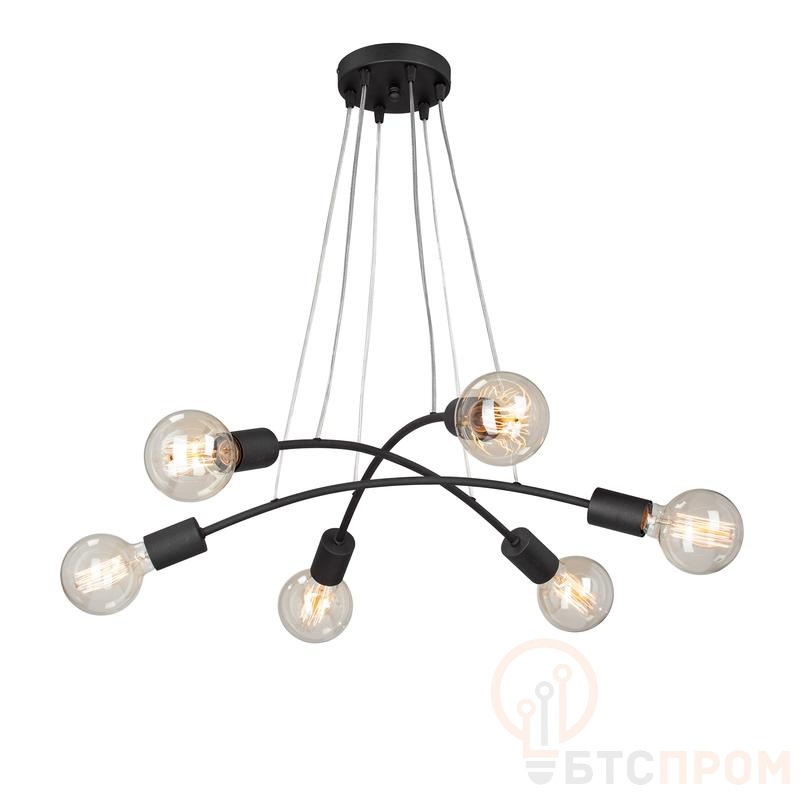 Люстра Vitaluce V4989-1/6S на шесть ламп под цоколь Е27, в стиле лофт. Может украсить вашу гостиную, столовую или спальню. Цвет арматуры - черный. Возможна установка светодиодных, энергосберегающих, филаментных или ламп накаливания. Площадь освещения при использовании ламп накаливания составляет 18 м2. При использовании светодиодной лампы мощностью до 8 Вт площадь освещения может быть увеличена до 24 м2. Лампы в комплект не входят. Параметры изделия: высота - 104 см, диаметр - 58 см. Тип крепления - план. Не рекомендовано для ванных комнат, подходит для установки на натяжной потолок. Прилагается инструкция по сборке и установке.