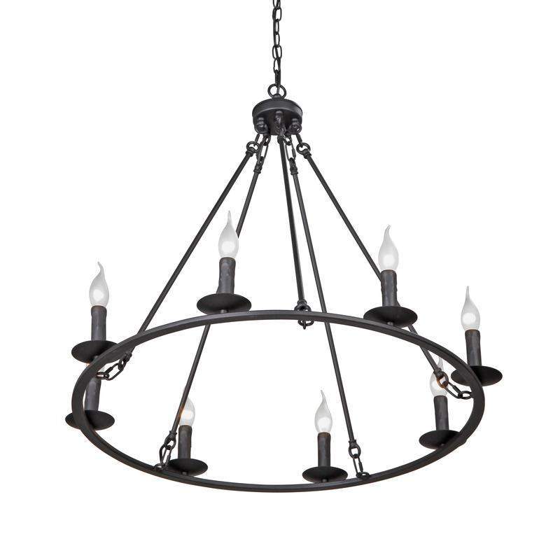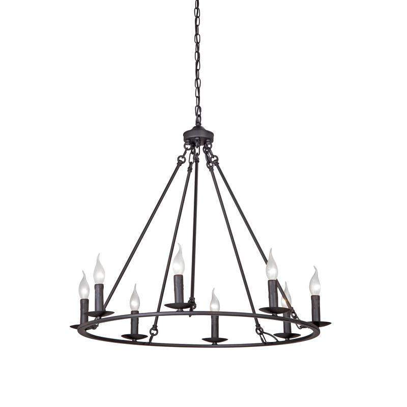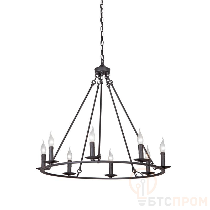 Люстра V3756-1/8 VITALUCE на 8 ламп по 40 Вт строгого стиля рустика. Может украсить Вашу гостиную, столовую или любое помещение Вашей дачи. Цвет арматуры - черный. Лампы в комплект не входят.