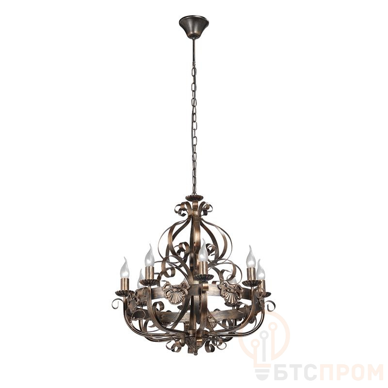 Люстра V1166/8 VITALUCE на 8 ламп по 40 Вт строгого стиля рустика. Может украсить Вашу гостиную, столовую или любое помещение Вашей дачи. Цвет арматуры - черный с бронзой. Лампы в комплект не входят.При использовании светодиодной лампы мощностью до 8 Вт площадь освещения до 24 м2