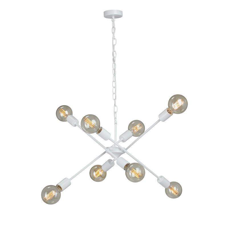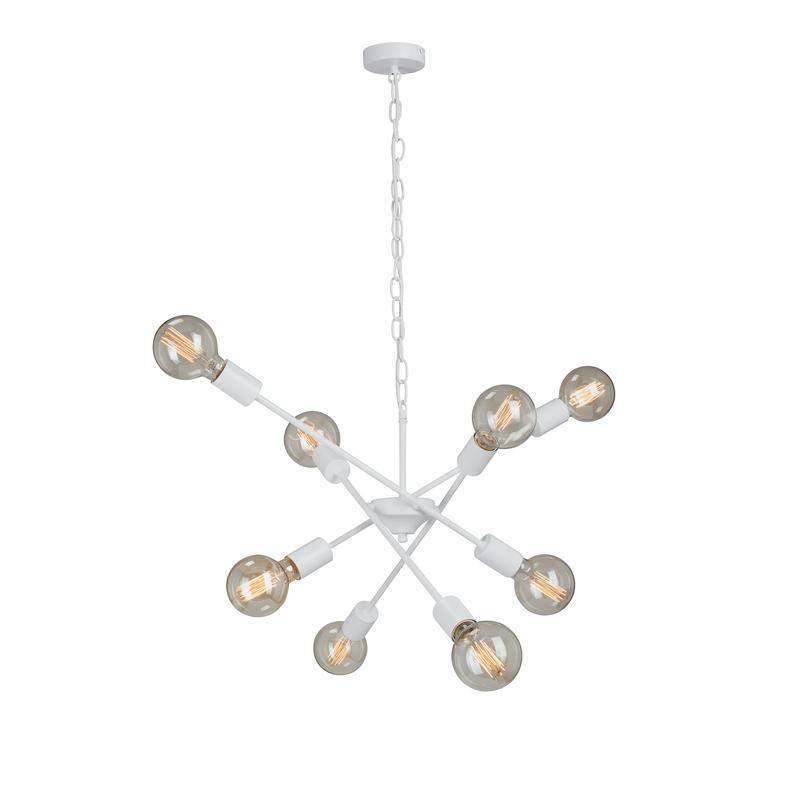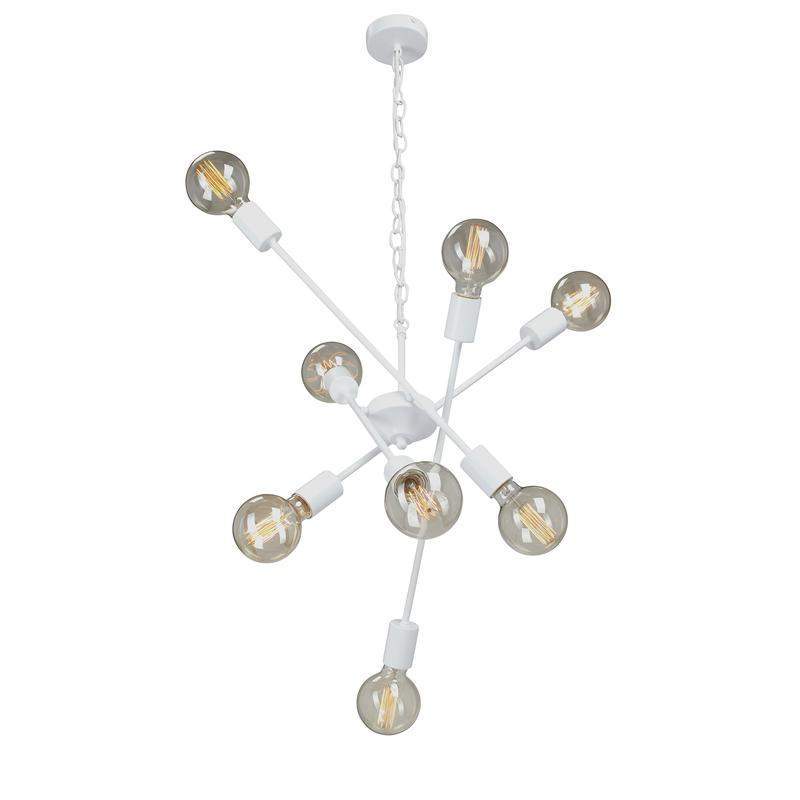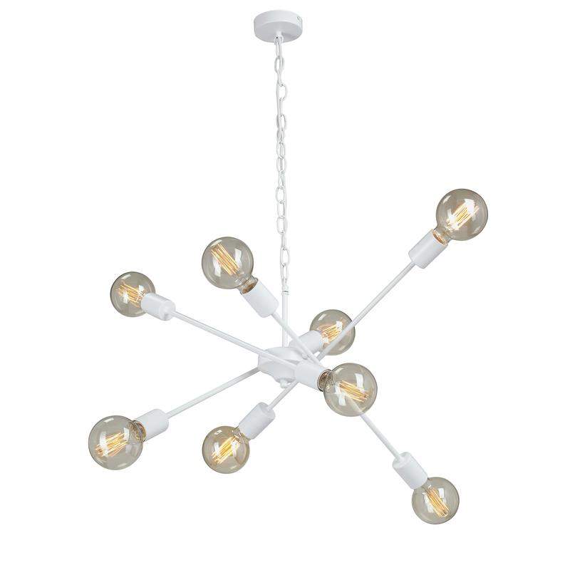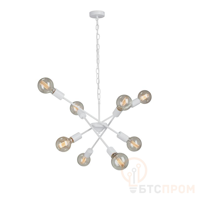 Люстра подвесная Vitaluce V4750-0/8 на восемь ламп под цоколь Е27 в стиле лофт будет прекрасным дополнением для любого интерьера. Люстра на потолок может украсить не только вашу гостиную, столовую или спальню, он также идеально впишется в лофт пространства, кафе, рестораны и другие общественный места. Подвесная люстра изготовлена из металлического каркаса. Цвет арматуры - белый матовый. Возможна установка светодиодных, энергосберегающих, филаментных или ламп накаливания. Площадь освещения при использовании ламп накаливания составляет 24 м2. При использовании светодиодной лампы мощностью до 8 Вт площадь освещения может быть увеличена до 40 м2. Люстра имеет возможность крепления на планку, что делает ее универсальной для монтажа к любым видам потолков. Обращаем ваше внимание, лампы в комплект не входят. Параметры изделия: высота - 96 см, длина - 74 см. Размеры потолочной чаши: высота - 2,5 см, диаметр - 9,8 см. Длина изделия регулируется. Прилагается инструкция по сборке и установке.