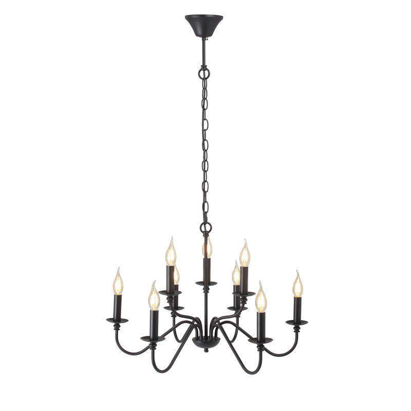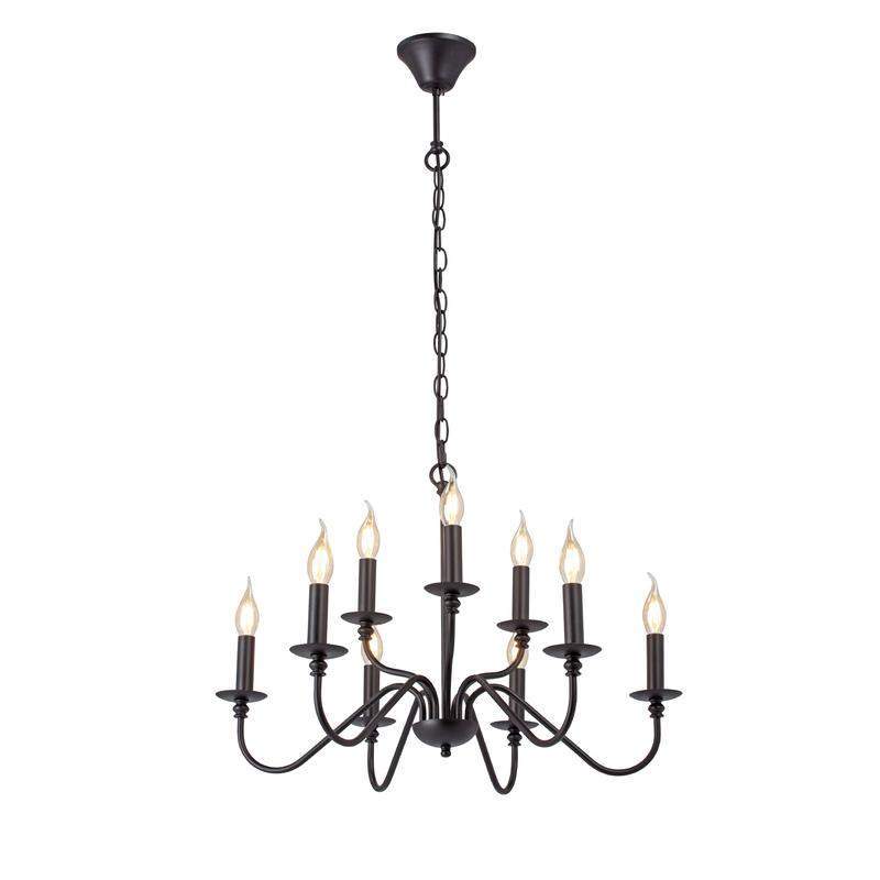 Люстра Vitaluce V1865-1/9 на девять ламп под цоколь Е14 в стиле рустика, своим строгим видом придаст воздушность и сдержанность. Цвет арматуры - чёрный. Возможна установка энергосберегающих, филаментных, накаливания и светодиодных ламп. Площадь освещения с лампой накаливания составляет 27 кв.м. При светодиодной лампе мощностью 8Вт площадь освещения составит 34 кв.м. Размеры изделия: высота - 110,5 см, диаметр - 66 см. Размеры потолочной чаши: высота - 6,5 см, диаметр - 12 см. Тип крепления - крюк. Длина изделия регулируется. Прилагается инструкция по сборке и установке.
