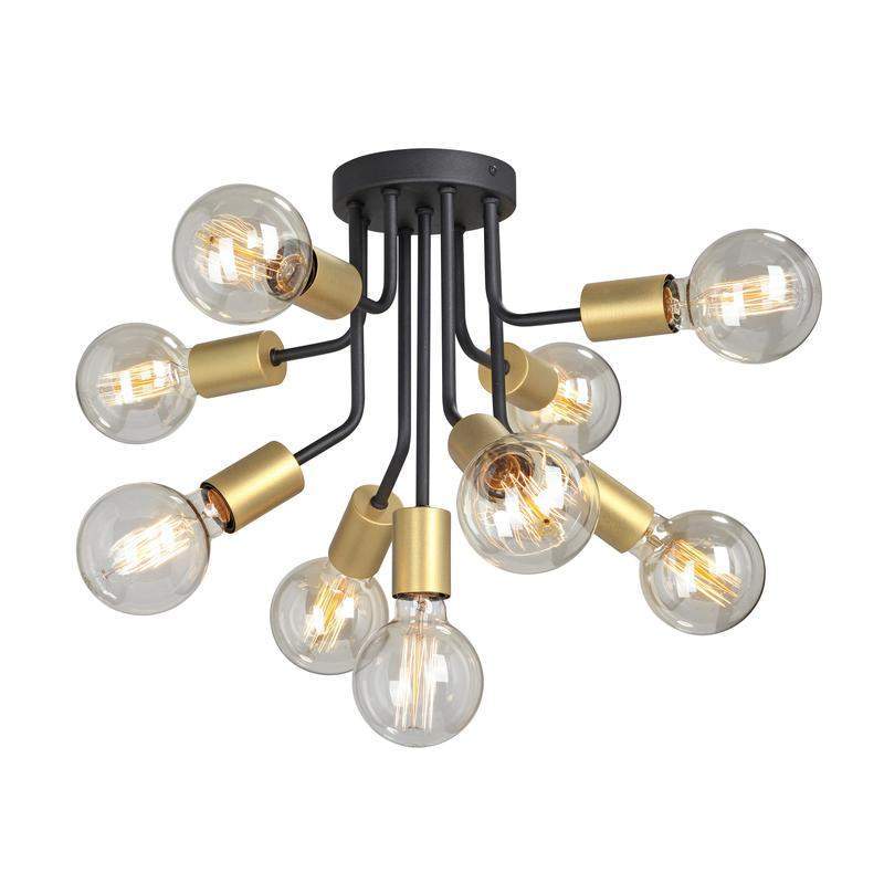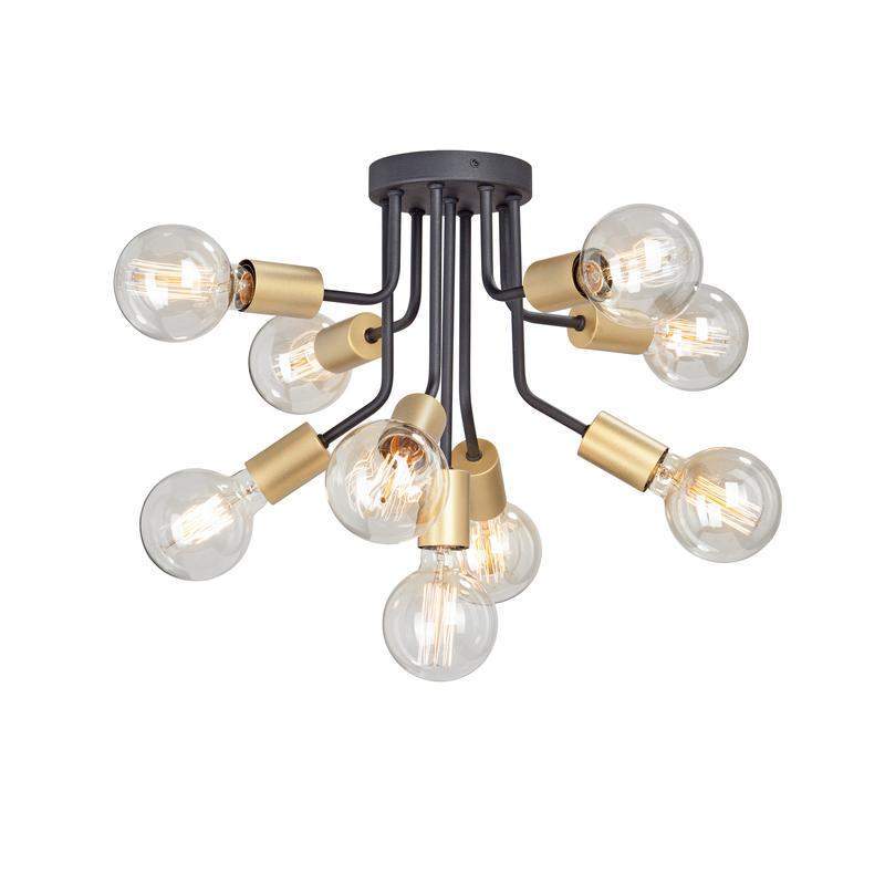 Люстра V4957-1/9PL VITALUCE на 9 ламп по 15 Вт привлекательного и вместе с тем грубоватого стиля лофт прекрасно впишется в помещение с любым другим стилевым наполнением. Цвет арматуры - черный, тип крепления - планка.