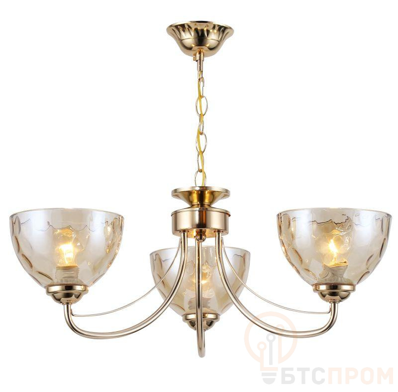 Подвес люстры Rivoli Adrianne (арт. 9174-303) декорирован цепочкой. Высоту подвеса можно отрегулировать при монтаже люстры на потолок, убрав нужное количество звеньев цепи. Люстра Adrianne 3-рожковая применяется с 3 лампами Е27 40 Вт. Подвесная люстра выполнена в золотом цвете, корпус люстры из лёгкого прочного металла. Люстры коллекции Adrianne итальянского бренда Rivoli – современное осмысление классической люстры подвесной. В коллекции есть также люстры под 5 ламп – арт. 9174-305. А ещё – настенный светильник-бра (арт. 9174-401). Три стеклянных плафона люстры потолочной подвесной Adrianne впечатляют красивым объёмным узором и мягкой тёплой тонировкой.
