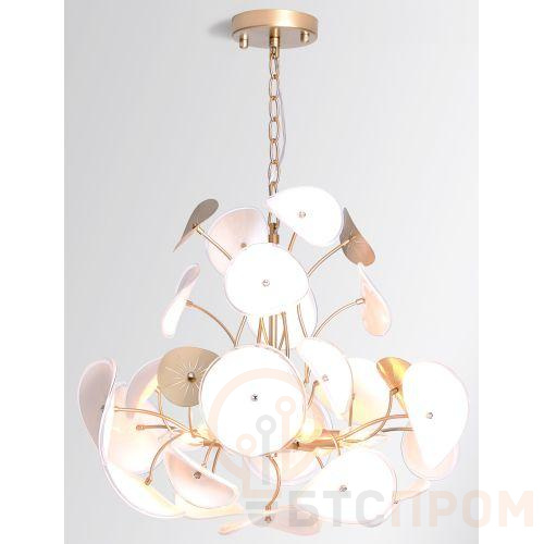 Каркас изделия выполнен из металла с устойчивым декоративным покрытием под золото, плафоны — из прозрачного хрусталя, что гарантирует эффектное рассеивание света. Модель предназначена для стационарного подключения к сети 220В. Основная сфера применения — центральное освещение гостиных, столовых, холлов в классических интерьерах, а также использование в ресторанах и отелях для создания репрезентативной обстановки. Габаритные размеры требуют учета при монтаже.