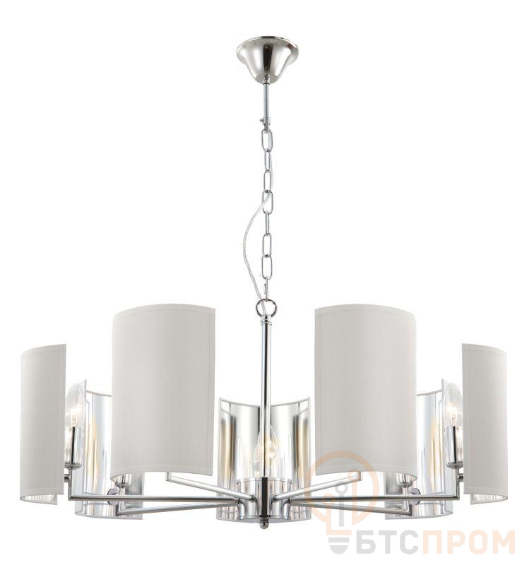 Каркас изделия выполнен из металла с декоративными элементами под золото и хром, плафоны — из прозрачного хрусталя, что обеспечивает эффектное рассеивание света. Основная сфера применения — центральное освещение гостиных, столовых, холлов и других жилых комнат в классических интерьерах. Монтаж осуществляется на стандартные потолочные крюки. Габаритные размеры модели обеспечивают оптимальное светораспределение.