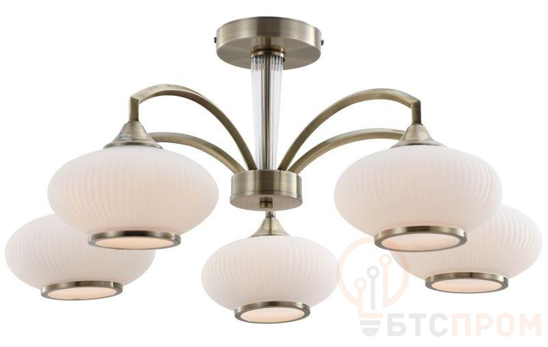 Rivoli Avarice (арт. 2077-305) – люстра потолочная на штанге, цвет арматуры – античная бронза. Пять овальных плафонов люстры изготовлены их матового стекла белого цвета и имеют узор «в рубчик». Форма арматуры люстры на потолок – минималистичная, аккуратная. Люстра современная под 5 ламп подходит для стандартных жилых помещений средней площади (до 15 м2). Люстры потолочные Avarice Rivoli хорошо смотрятся в центре потолка. Круговое расположение источников света равномерно распределяет световой поток от ламп. Люстры Avarice от итальянского бренда Rivoli применяются с лампочками Е27 60 Вт или светодиодными аналогами. В коллекцию Rivoli Avarice входит также бра (арт. 2077-401) и люстра с 7 плафонами (арт. 2077-307).