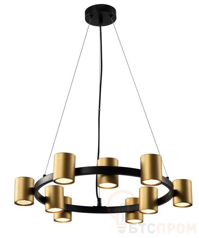 Металлическая люстра на тросах Rivoli Chloe (арт. 3153-309) применяется с 9 лампочками GU10 15 Вт. Плафоны этой подвесной люстры выполнены в формате спотов. Споты золотого цвета размещены на круглом металлическом ободе люстры. Основание и обод окрашены в чёрный цвет, который отлично сочетается с золотым цветом плафонов. Люстру на тросах можно подвесить выше или ниже при монтаже конструкции на потолок. Люстра Rivoli Chloe – интересное решение европейских дизайнеров, созданное в смелом сочетании элементов замкового и ультрасовременного стилей. Дизайнерскую коллекцию Chloe Rivoli дополняет люстра на металлической рейке с 4 плафонами – арт. 3153-304.