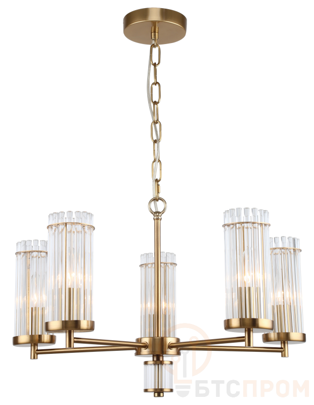 Коллекция дизайнерских люстр в классическом стиле Rivoli Dolly включает в себя: люстры подвесные под 5 ламп – арт. 2074-305, подвесные люстры под 7 ламп – арт. 2074-307, классические люстры потолочные под 12 ламп – арт. 2074-312, бра настенное – арт. 2074-401. Коллекцию отличает гальваническое окрашивание металла в цвет латуни и плафоны из прозрачных стеклянных трубочек. Данная люстра на потолок освещает площадь до 15 м2, к ней подходят лампы Е14 40 Вт, 5 шт. Такую люстру потолочную стоит купить в гостиную, спальню, в кабинет, на кухню, в загородный дом. Люстра металлическая с лаконичным дизайном поможет оформить пространства в стиле классика, современная классика, лофт, модерн. Высота подвеса люстры регулируется при монтаже.