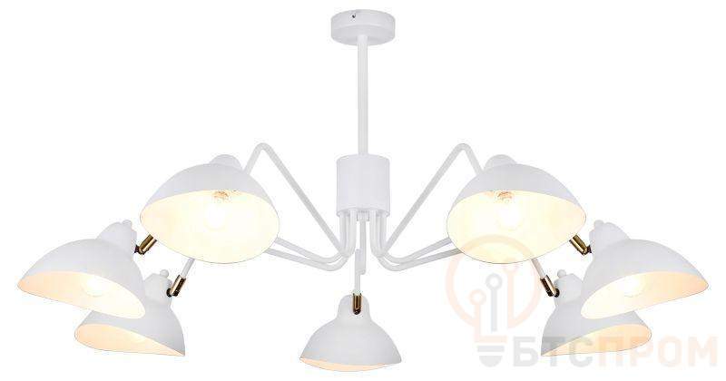 Металлическая люстра потолочная Rivoli Georgia (арт. 4100-307) с 7 плафонами, дизайн которых напоминает уличные ретро-фонари. Люстра-паук на штанге прекрасно дополнит любой современный интерьер. Потолочная люстра Georgia изготовлена из лёгкого прочного металла и имеет стойкое гальваническое покрытие, защищающее люстру от выцветания и царапин. Белый цвет делает люстры Georgia универсальными для любого пространства. Купить аналогичную люстру в чёрном цвете можно по артикулу 4101-307 (Rivoli Geraldine). В коллекции белых металлических люстр и светильников Rivoli Georgia вы найдёте также люстры под 5 ламп (арт. 4100-305), бра – арт. 4100-401. Свет плафонов с фонарными козырьками направлен вниз, что формирует яркий направленный световой поток. Коллекция декорирована латунными деталями у основания плафонов.