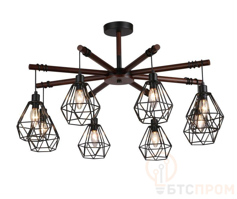 Люстра Ianta 2051-308 в стиле лофт-кантри — это надежный и стильный источник освещения для интерьеров в индустриальном или загородном эстетике. Модель выполнена из металла с эффектом состаренной патины, что придает ей характерный винтажный вид. Конструкция рассчитана на 8 ламп с цоколем E14, максимальной мощностью 40Вт каждая, обеспечивая суммарный мощный и равномерный световой поток до 320Вт.
