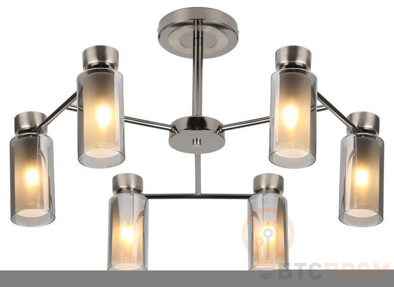 Люстра Klara 3099-306 — это стилизованный дубликат модели Rivoli Б0060519 в современной интерпретации. Конструкция выполнена из металла с матовым никелированным покрытием, обеспечивающим устойчивость к коррозии и долговечность. Модель оснащена шестью патронами стандарта E14, рассчитанными на использование ламп накаливания или светодиодных ламп мощностью до 15Вт каждая, что позволяет создать общее освещение до 90Вт эквивалента.