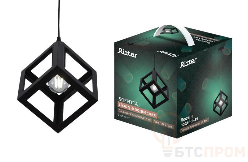 Люстра Ritter 52626 1 SOFFITTA — это подвесная люстра. Модель имеет размеры 226x260x1000 мм и рассчитана на 1 лампочку E27. Корпус выполнен из черного металла. Люстра Soffitta отличается компактными размерами и лаконичным дизайном, что позволяет использовать ее в небольших помещениях или для локальной подсветки.