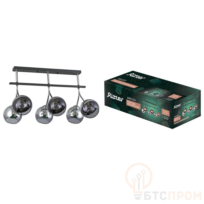 Люстра Ritter 52554 7 AREZZO — это потолочная люстра. Модель имеет размеры 560x360x370 мм и рассчитана на 6 лампочек E27. Корпус выполнен из черного металла и хрома. Сочетание цветов создает современный и динамичный образ. Люстра Arezzo подойдет для освещения гостиной или столовой в стиле хай-тек или лофт.