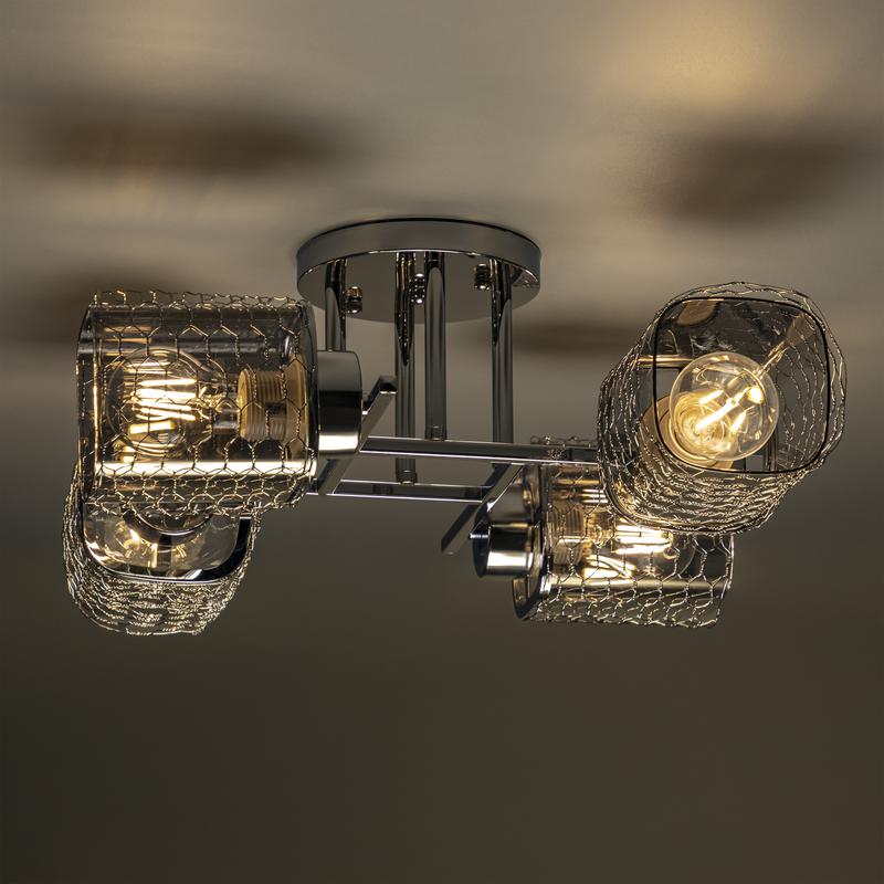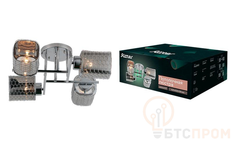 Люстра Ritter 52522 6 PALERMO — это потолочная люстра. Модель имеет размеры 420x420x185 мм и рассчитана на 4 лампочки E27. Это более мощная версия модели Palermo, предназначенная для освещения гостиных и столовых среднего размера. Квадратная форма органично вписывается в современные интерьеры.