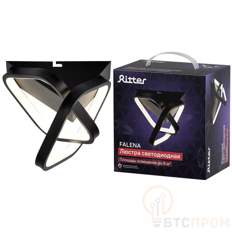 Люстра потолочная светодиодная диммируемая FALENA 3 режима 220х200х225мм 30Вт 2700К/4200К/6400К 6кв.м черн. Ritter 51653 2