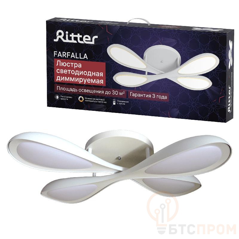 Люстра потолочная светодиодная диммируемая FARFALLA с ДУ 3 режима 870х540х170мм 102Вт 2700К/4200К/6400К 30кв.м бел. Ritter52099 7