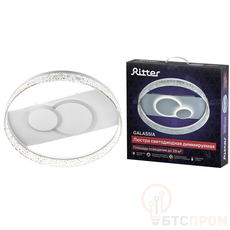 Люстра потолочная светодиодная диммируемая GALASSIA с ДУ 3 режима 500х95 78Вт 2700К+6400К/4200К/6400К+2700К 29кв.м бел. Ritter 51576 4