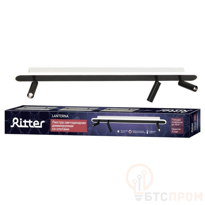 Люстра потолочная светодиодная диммируемая Ritter 51602 0 LANTERNA с ДУ — поворотный цилиндр 900x70x170 мм мощностью 52Вт. Освещает площадь до 18 кв.м. Черный корпус.
