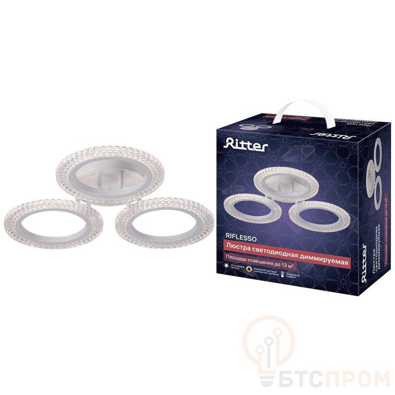 Люстра потолочная светодиодная диммируемая RIFLESSO с ДУ 3 режима 435х75 42Вт 13кв.м бел. Ritter 52923 5