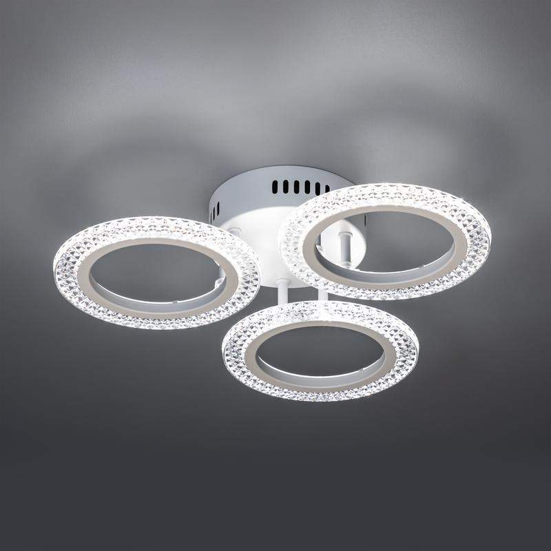Люстра потолочная светодиодная диммируемая Ritter 52923 5 RIFLESSO с ДУ имеет размеры 435x75 мм и мощность 42Вт. Освещает площадь до 13 кв.м. Белый корпус.