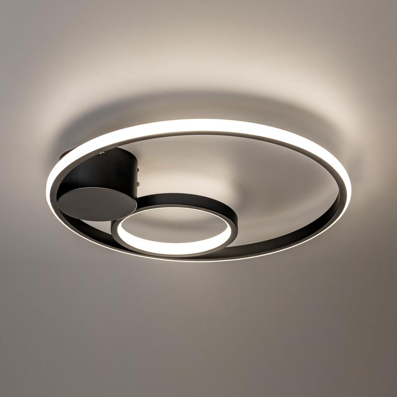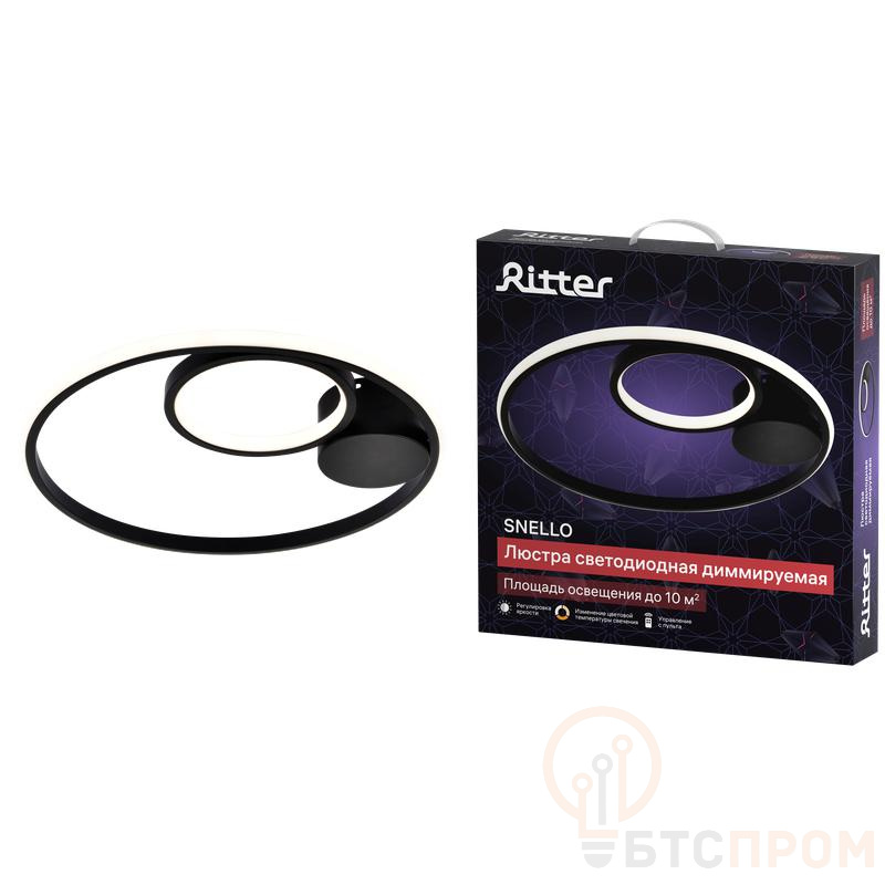 Люстра потолочная светодиодная диммируемая Ritter 51655 6 SNELLO с ДУ диаметром 450 мм и высотой 70 мм, мощностью 60Вт. Освещает площадь до 10 кв.м. Три цветовые температуры. Черный корпус.