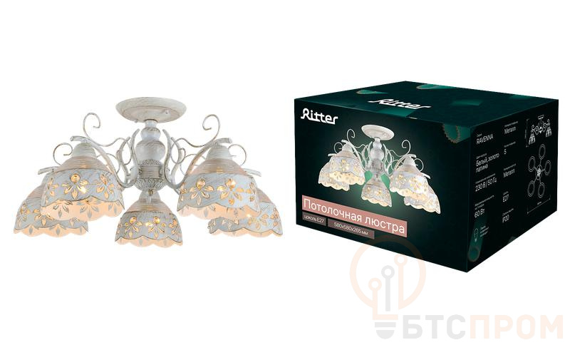 Люстра Ritter 52513 4 RAVENNA — это потолочная люстра в современном стиле. Модель рассчитана на 5 лампочек E27, имеет размеры 580x580x265 мм. Корпус выполнен из белого металла. Люстра Ravenna предназначена для освещения гостиных, столовых и спален среднего размера. Ее дизайн сочетает в себе простоту и элегантность, что позволяет ей гармонировать с различными стилями интерьера. Бренд Ritter известен своим оптимальным соотношением цены и качества.