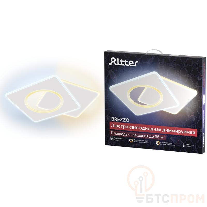 Люстра светодиодная BREZZO 100Вт 755х600х50мм 44кв.м потолочная ДУ 3 режима диммир. бел. Ritter 52390 1