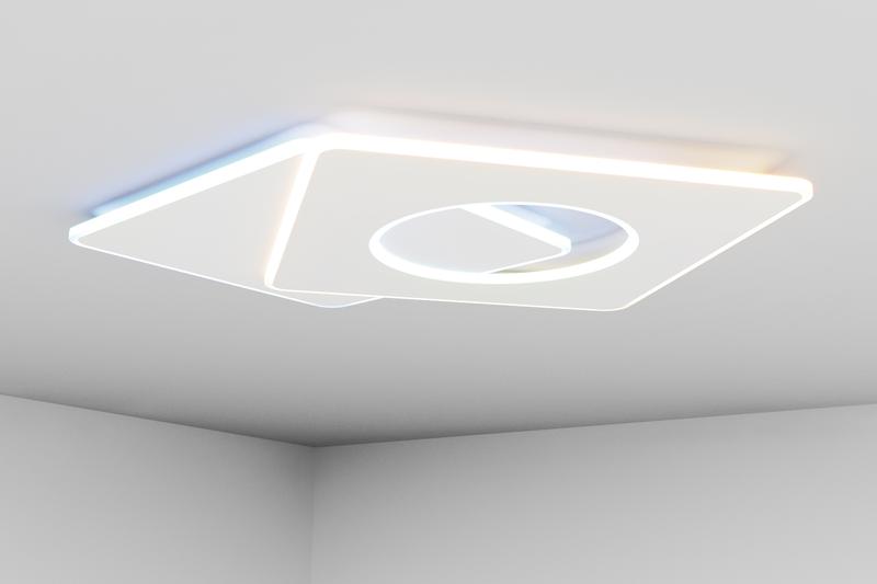 Люстра светодиодная Ritter 52390 1 BREZZO мощностью 100Вт и размером 755x600x50 мм. Освещает площадь до 44 кв.м. Пульт ДУ, три режима, диммирование. Белый корпус.