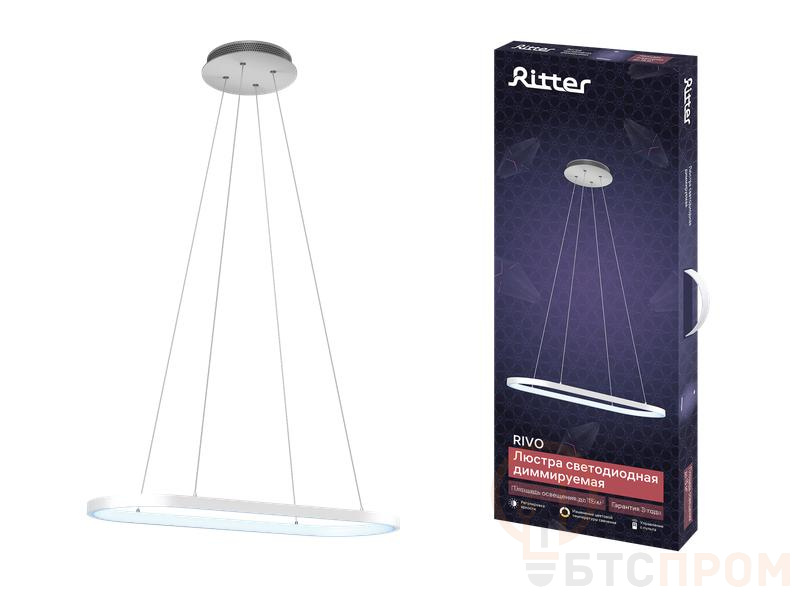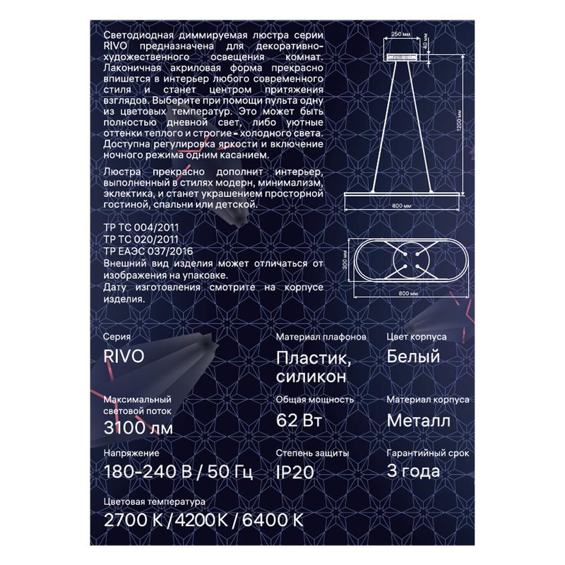 Люстра светодиодная RIVO 62Вт 800х300х1200мм 15кв.м потолочная ДУ 3 режима диммир. бел. Ritter 52092 8