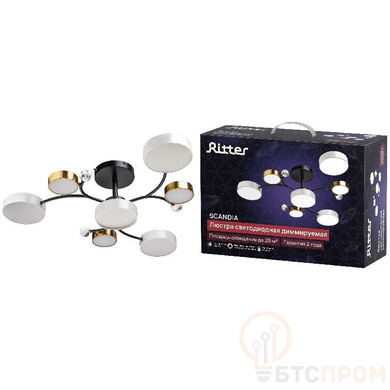 Люстра светодиодная Ritter 51599 3 SCANDIA мощностью 80Вт и размером 750x210 мм. Освещает площадь до 29 кв.м. Пульт ДУ, три режима, диммирование. Черно-зелено-белый корпус.
