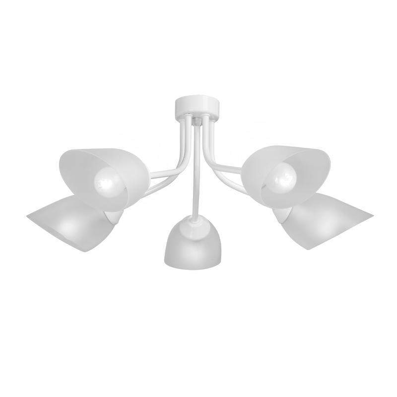 Люстра Vitaluce V3184/5PL на пять ламп под цоколь Е14 в оригинальном и лёгком стиле эконом. Цвет арматуры - белый глянец. Возможна установка ламп накаливания, светодиодных и филаментных. При использовании ламп накаливания площадь освещения составит 15 кв.м. При использовании светодиодных ламп мощностью 8 Вт площадь освещения составит 25 кв.м. Параметры изделия: высота - 23 см, диаметр - 54 см. Размеры потолочной чаши: высота - 2,5 см, диаметр - 6,7 см. Тип крепления - планка. Не рекомендовано для ванных комнат, подходит для установки на натяжной потолок. Прилагается инструкция по сборке и установке.