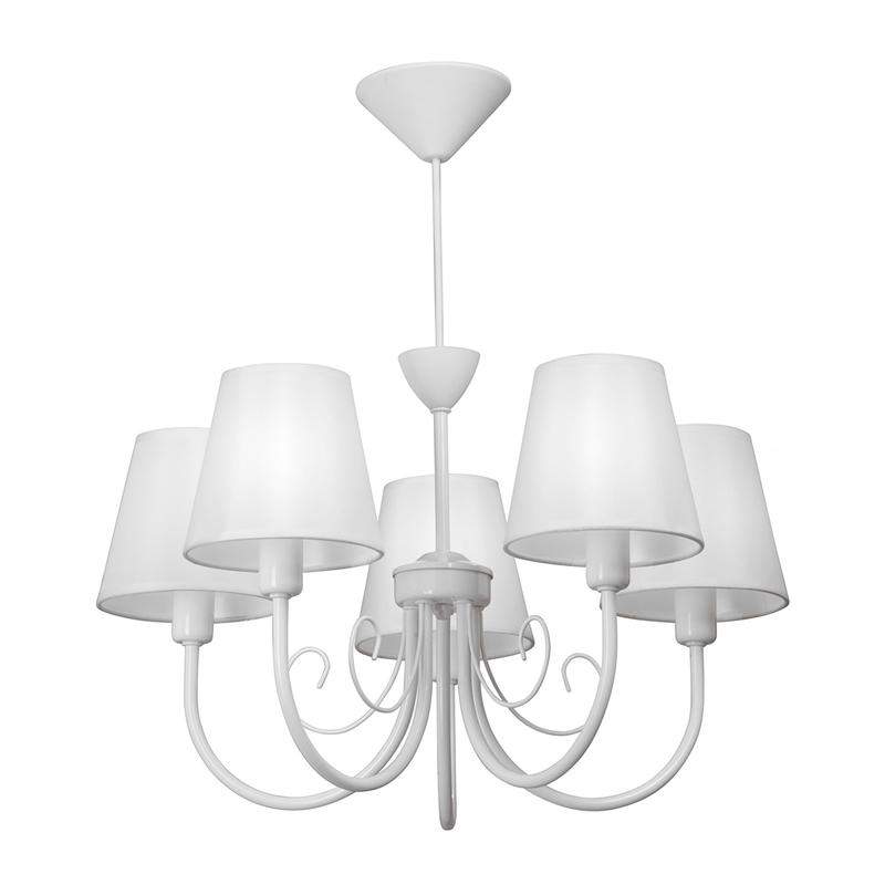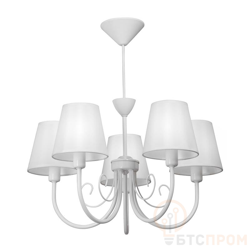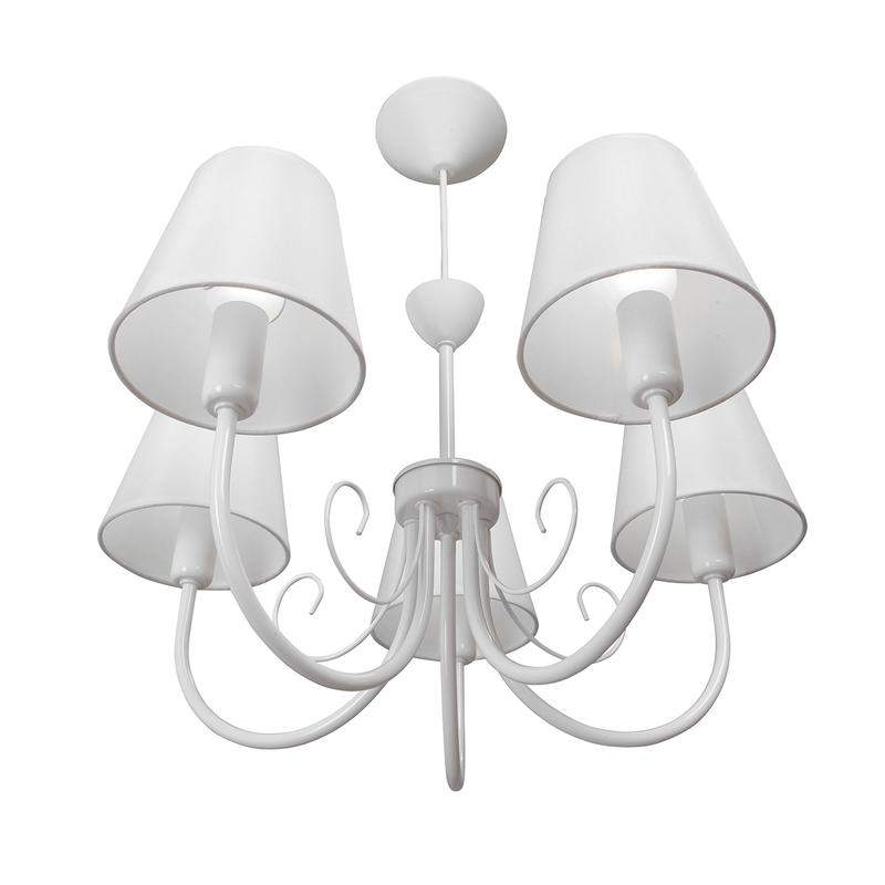 Практичная люстра V3325/5 VITALUCE на 5 ламп под цоколь E14 - отличный выбор для вашей гостиной, столовой или спальни. Цвет арматуры - белый глянцевый. Возможна установка светодиодных, энергосберегающих, филаментных или ламп накаливания. Площадь освещения при использовании ламп накаливания, максимальной мощностью 40 Вт, составляет 10м2. При использовании светодиодной лампы мощностью до 8 Вт площадь освещения может быть увеличена до 16 м2. Лампы в комплект не входят. Размер потолочной чаши: диаметр - 11,5 см, высота - 5 см. Тип крепления - крюк (обратите внимание: само крепление не входит в комплект). Длина цепи регулируется, высота изделия с минимальной длиной провода - 35 см. Абажур из ткани белого цвета с типом крепления прищепка, высота - 12 см, диаметр верхний - 9 см, диаметр нижний - 14 см. Подходит для установки на натяжной потолок. Прилагается инструкция по сборке и установке.