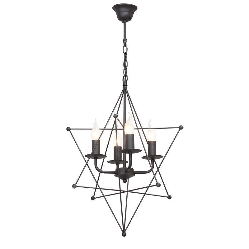 Люстра V4143/4 VITALUCE на 4 лампы по 60 Вт привлекательного и вместе с тем грубоватого стиля лофт прекрасно впишется в помещение с любым другим стилевым наполнением. Цвет арматуры - черный.При использовании светодиодной лампы мощностью до 8 Вт площадь освещения до 16 м2