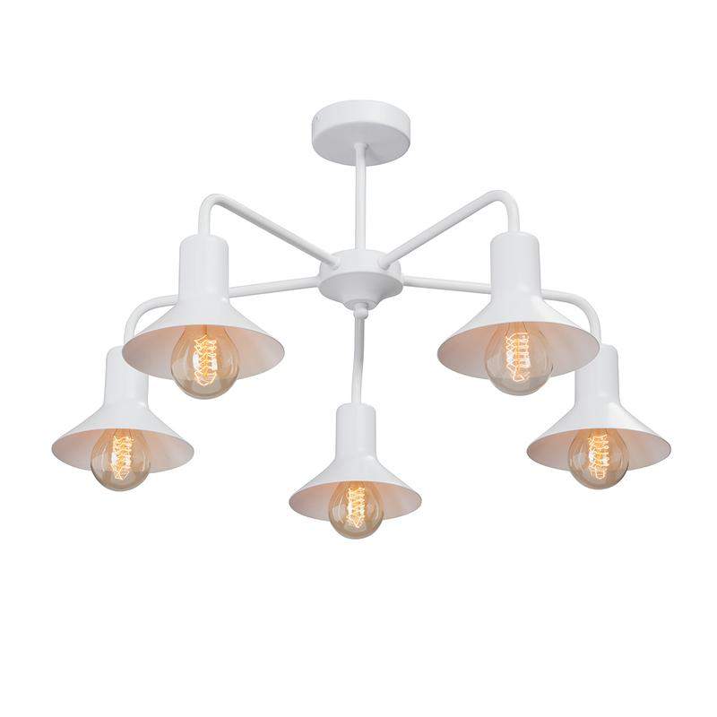 Люстра V4805-0/5PL VITALUCE на 5 ламп по 40 Вт привлекательного и вместе с тем грубоватого стиля лофт прекрасно впишется в помещение с любым другим стилевым наполнением. Цвет арматуры - белый, тип крепления - планка.Лампы в комплект не входят.