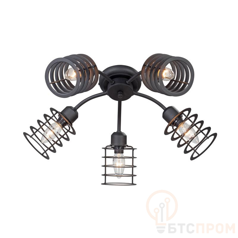 Люстра V4916-1/5PL VITALUCE на 5 ламп по 40 Вт привлекательного и вместе с тем грубоватого стиля лофт прекрасно впишется в помещение с любым другим стилевым наполнением. Цвет арматуры - черный, тип крепления - планка.При использовании светодиодной лампы мощностью до 8 Вт площадь освещения до 18 м2