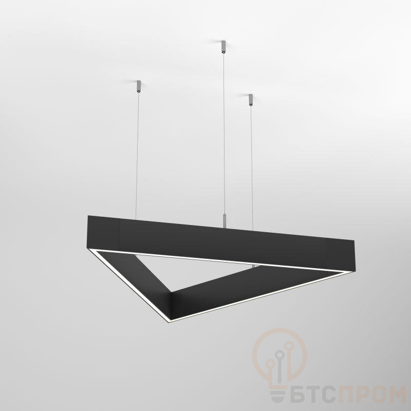 Подвесной треугольный светильник с возможностью диммирования и свечением вверх и вниз. Мощность 129 Вт, св. поток 11700 лм, 90 лм/Вт, теплый 3000 K, CRI>80, угол 100+100°, напряжение питания 230 В. Черный линейный корпус из алюминия, экран пластик, степень защиты IP20. Размер: длина 1376 мм, ширина 1191 мм, высота 94 мм, длина одной грани 1376 мм. Длина подвеса 1500 мм. Монтаж подвесной. Драйвер 33-40 В, 750 мА, пульсация <5%. Диммирование 0-10V. В комплекте набор для подвеса и кабель 1,5 м. Поставляется в разобранном виде.