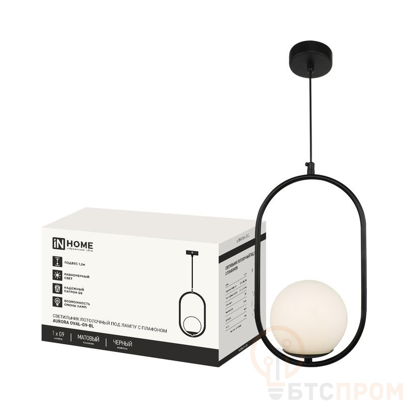 Светильник AURORA OVAL-G9-BL 1хG9 подвесной под лампу плафон матов./корпус черн. IN HOME 4690612063676